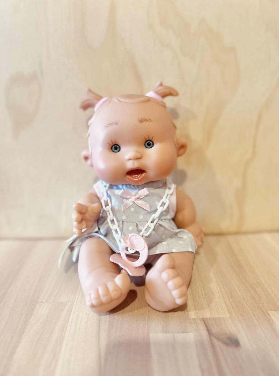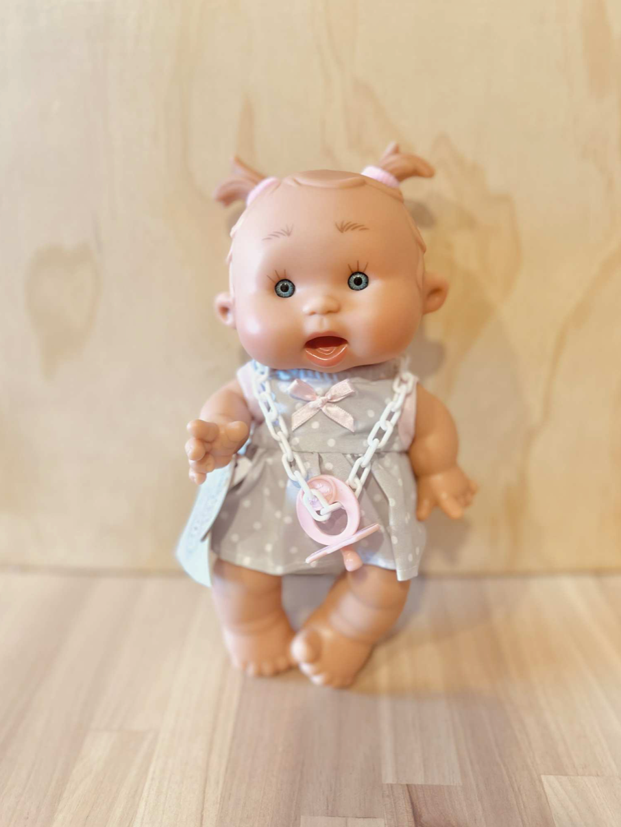 Baby Doll Pepote Original By Nines D'onil ( Soft grey spotted dress & piggy tails)